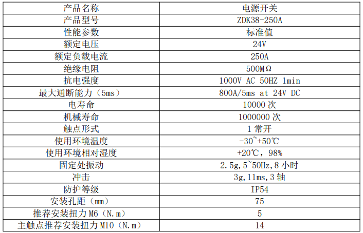 該產(chǎn)品適用于直流電壓 24V 電流 250A 主電路的新能源電動(dòng)汽車以及蓄電池為 動(dòng)力源的各種車輛和設(shè)備的接通和緊急分?jǐn)嘀谩?/p>
